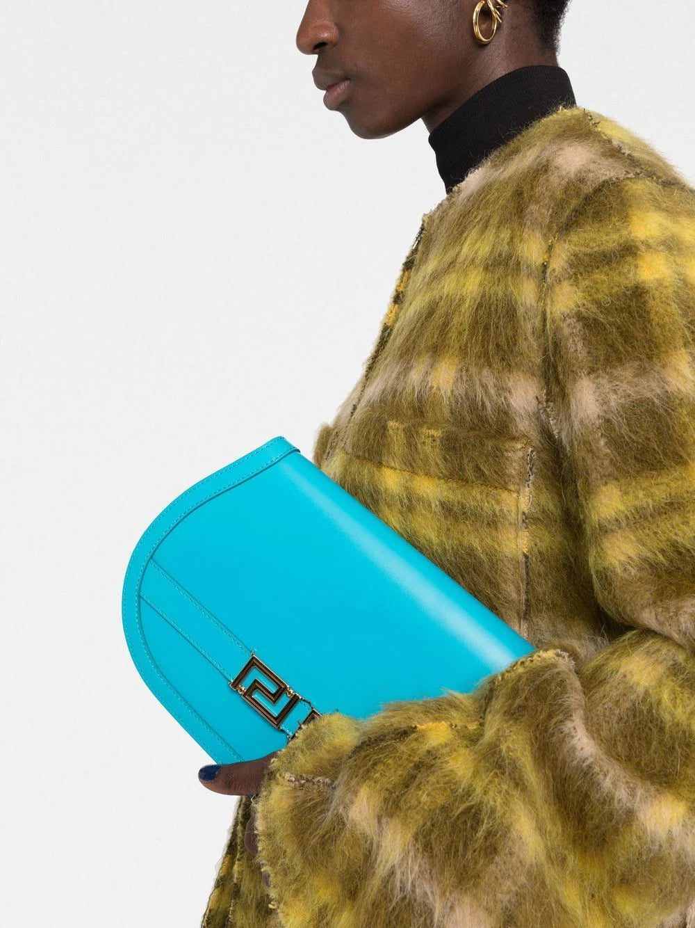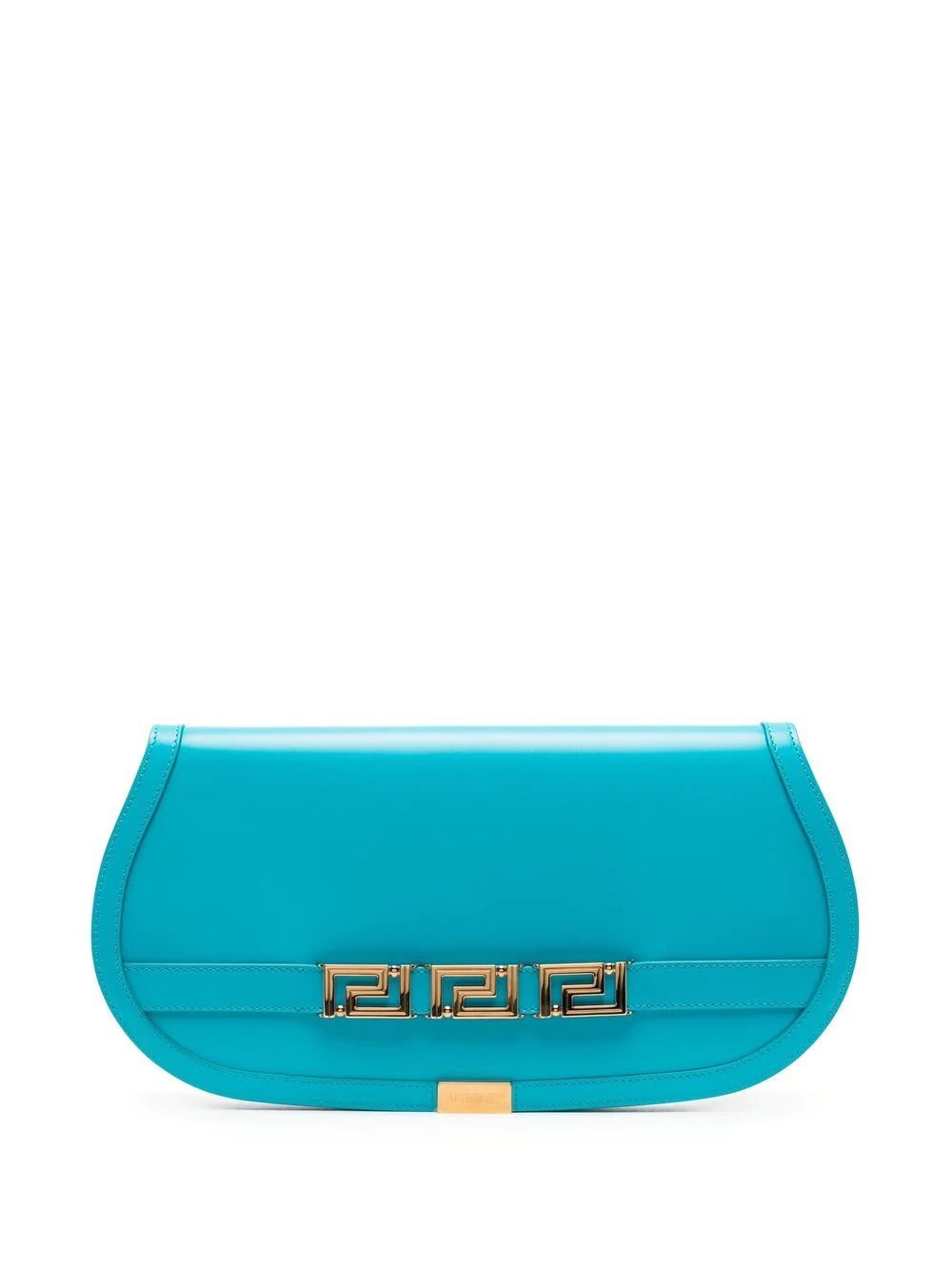 Since being introduced in 1988, Versace's iconic La Greca motif has remained a renowned signature of the house, transcending seasons and trends. Here, the motif appears in gold-tone hardware and is presented in an oversized silhouette, taking the central focus of this clutch bag.