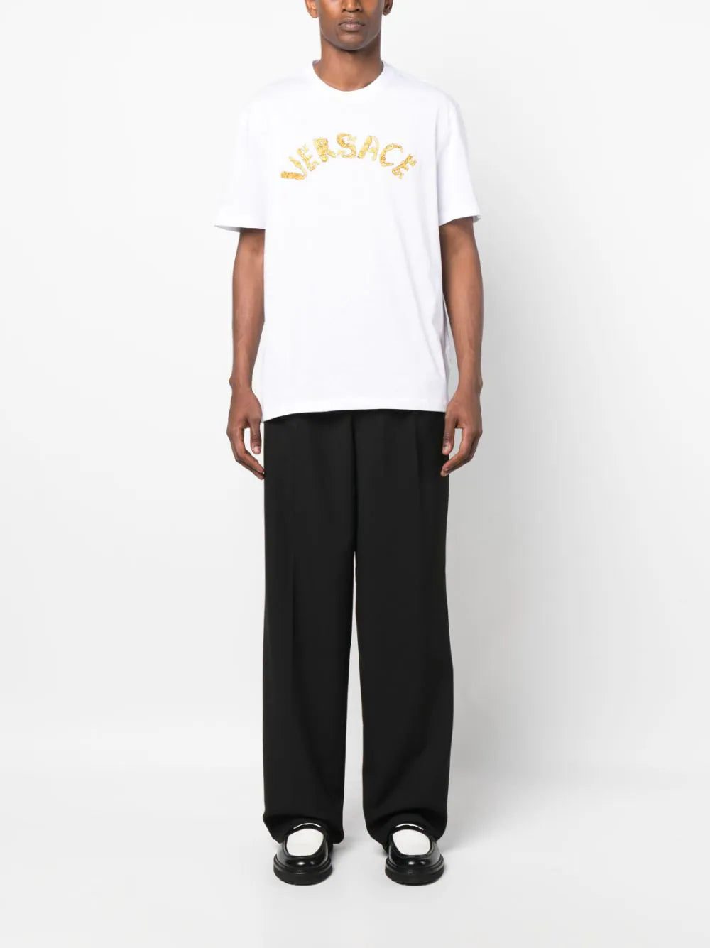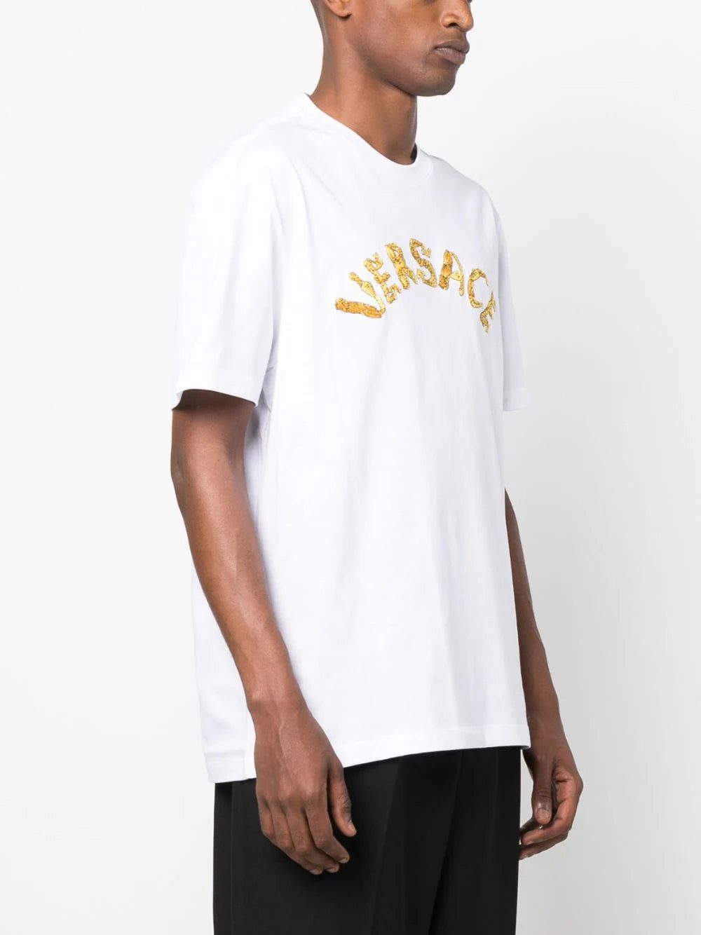 Versace's iconic branding takes a turn in this cotton T-shirt, appearing at the chest in an embroidered construction in the shape of the Seashell Baroque logo.