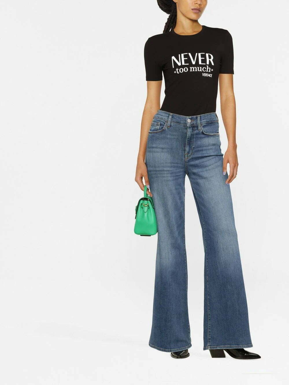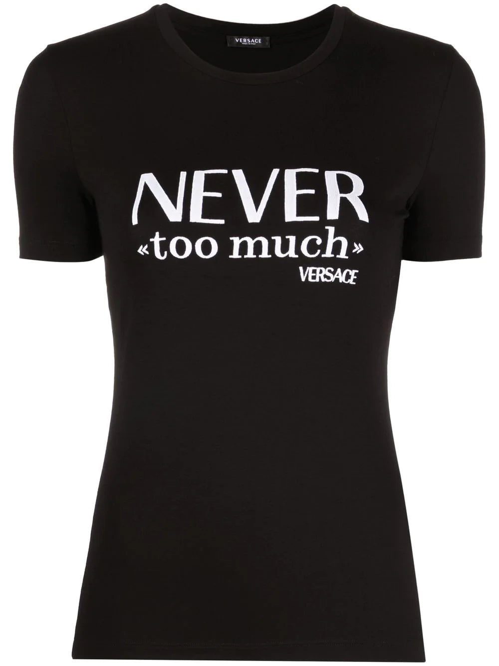 Versace highlights the brand's signature 'more is more' approach to design, with an eye-catching slogan print across the front of this short-sleeve T-shirt, which reads 'never too much'.