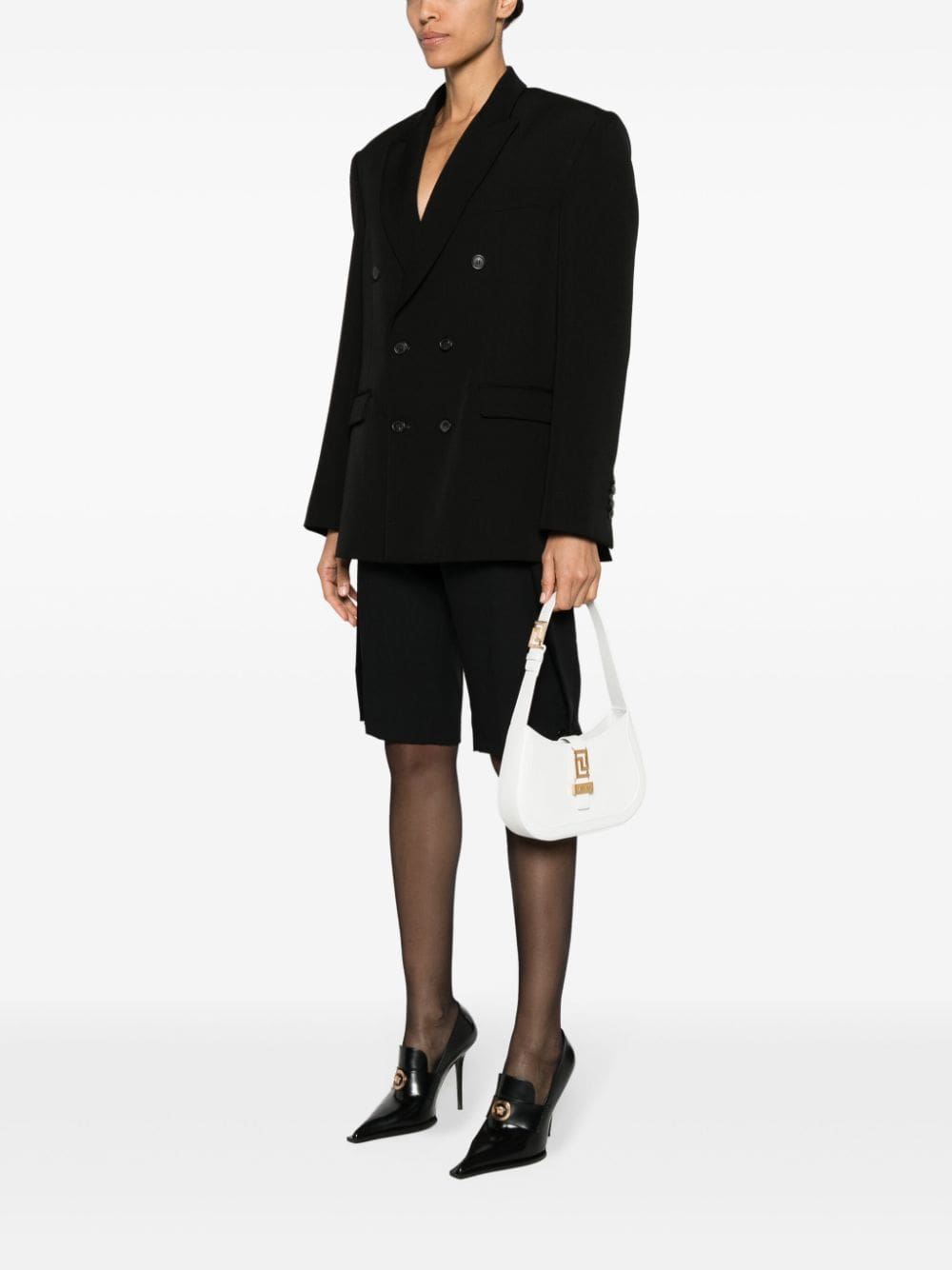 Versace honours heritage codes with this shoulder bag through its gold-tone hardware featuring the iconic Greca motif. The streamlined design is crafted from smooth white leather and comes with a practical adjustable handle.