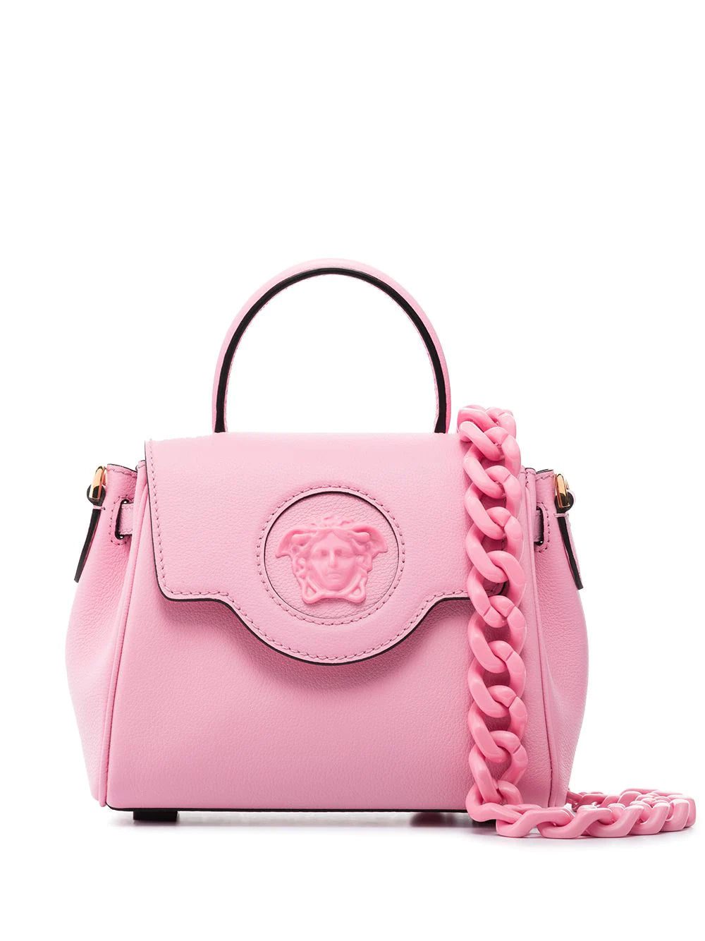 Versace's La Medusa bag made its debut in the SS21 collection and has been updated in several colourways since. This vibrant pink iteration is adorned with the brand's Medusa plaque - it first featured on the doors of the house's first-ever Milan headquarters.