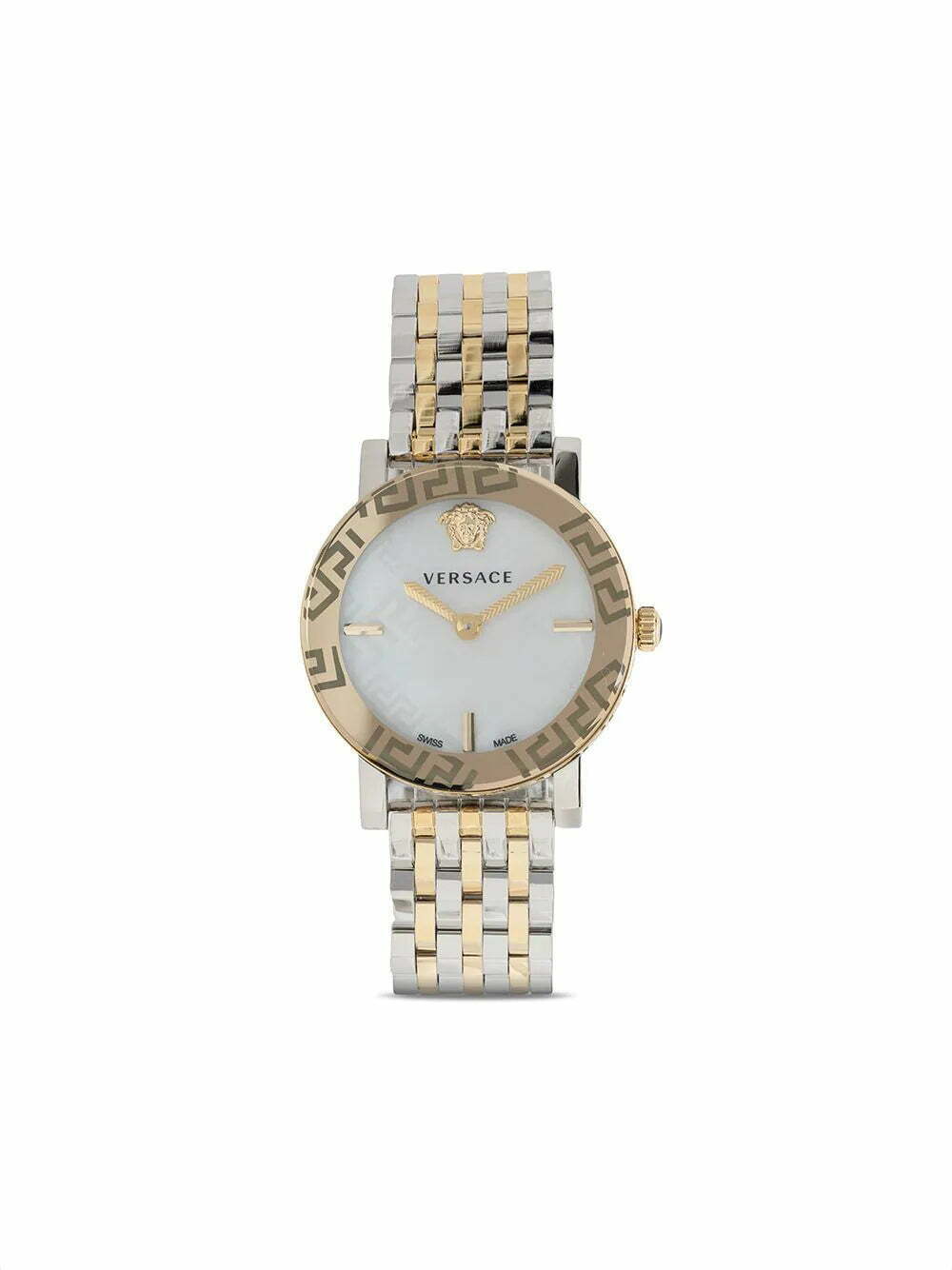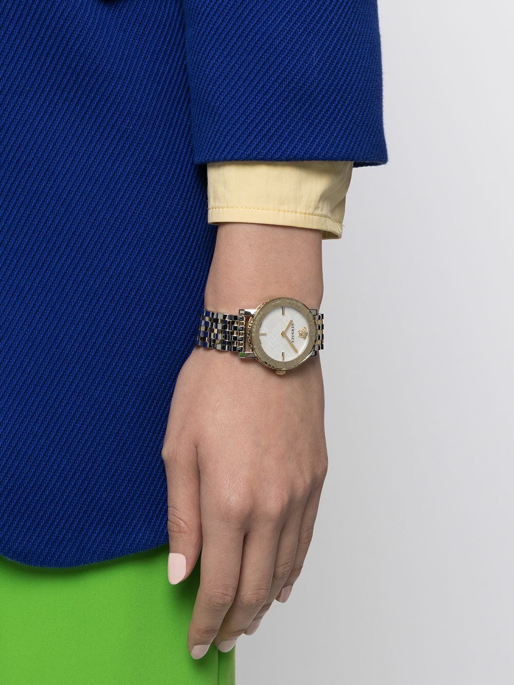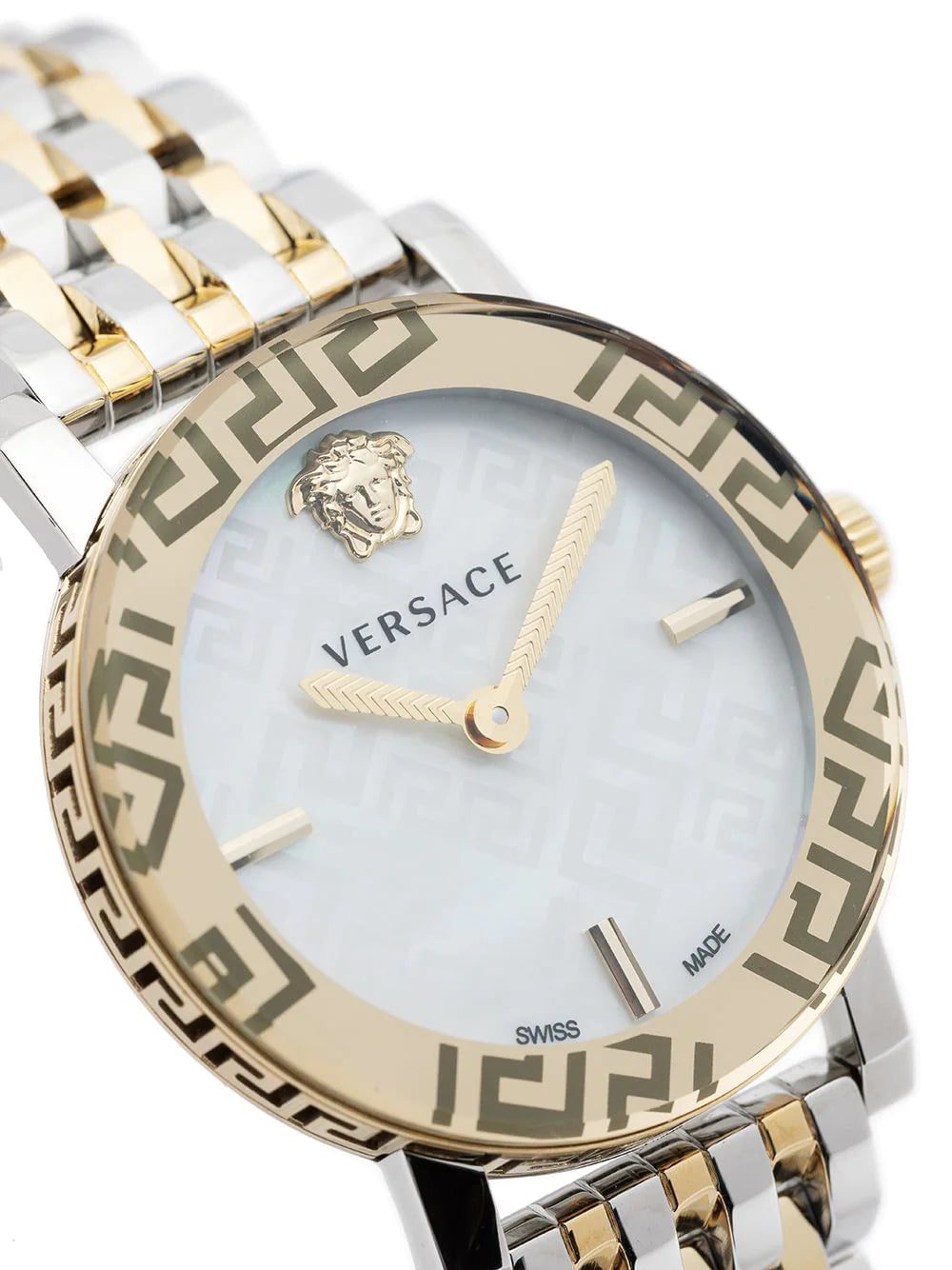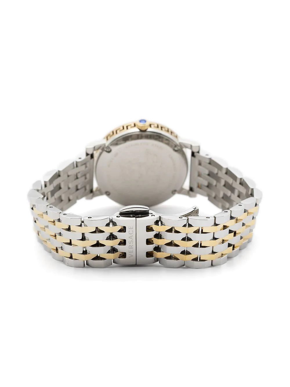 Versace is known for adding a signature touch to every collection. This U3-Greca Glass 32mm receives two of its iconic logos, by way of a Medusa head logo and a Greca Key motif for a final stamp of approval.