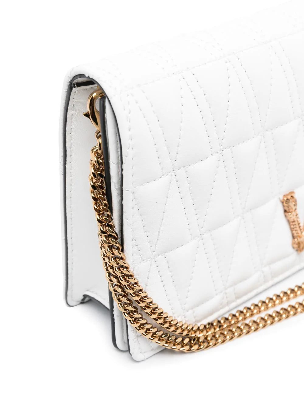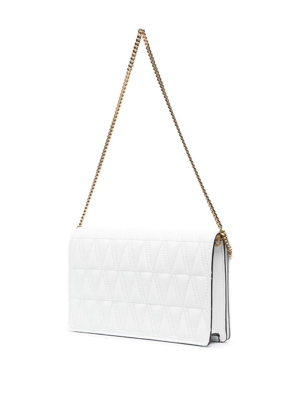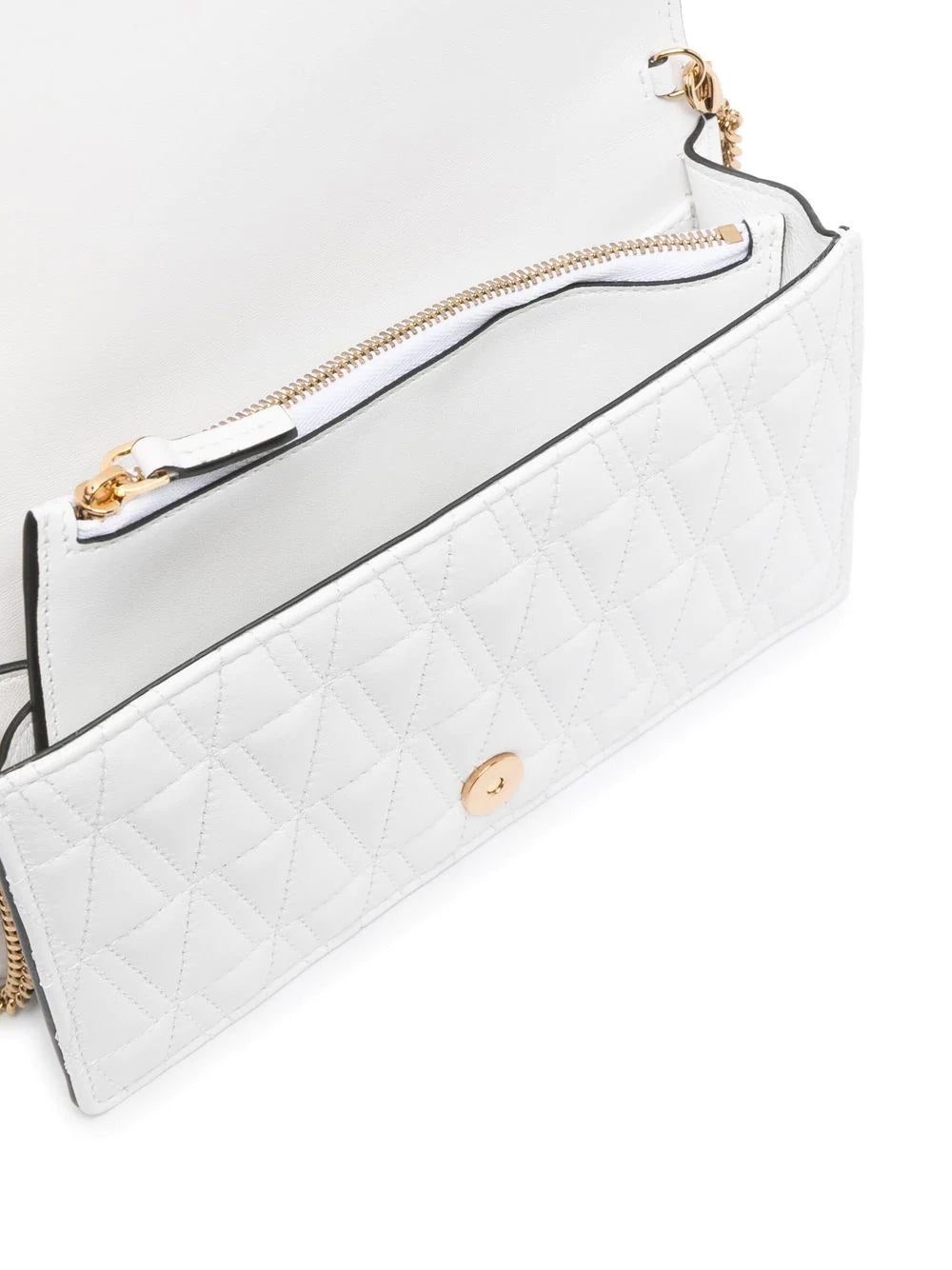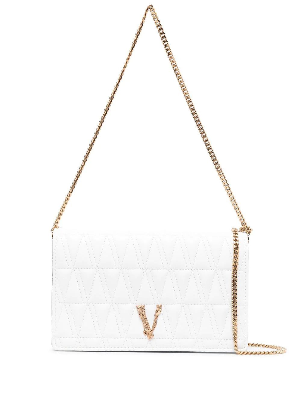 Versace offers an opulent design with this clutch. Crafted with a quilted construction, it is finished with polished, gold-tone hardware for timeless appeal.