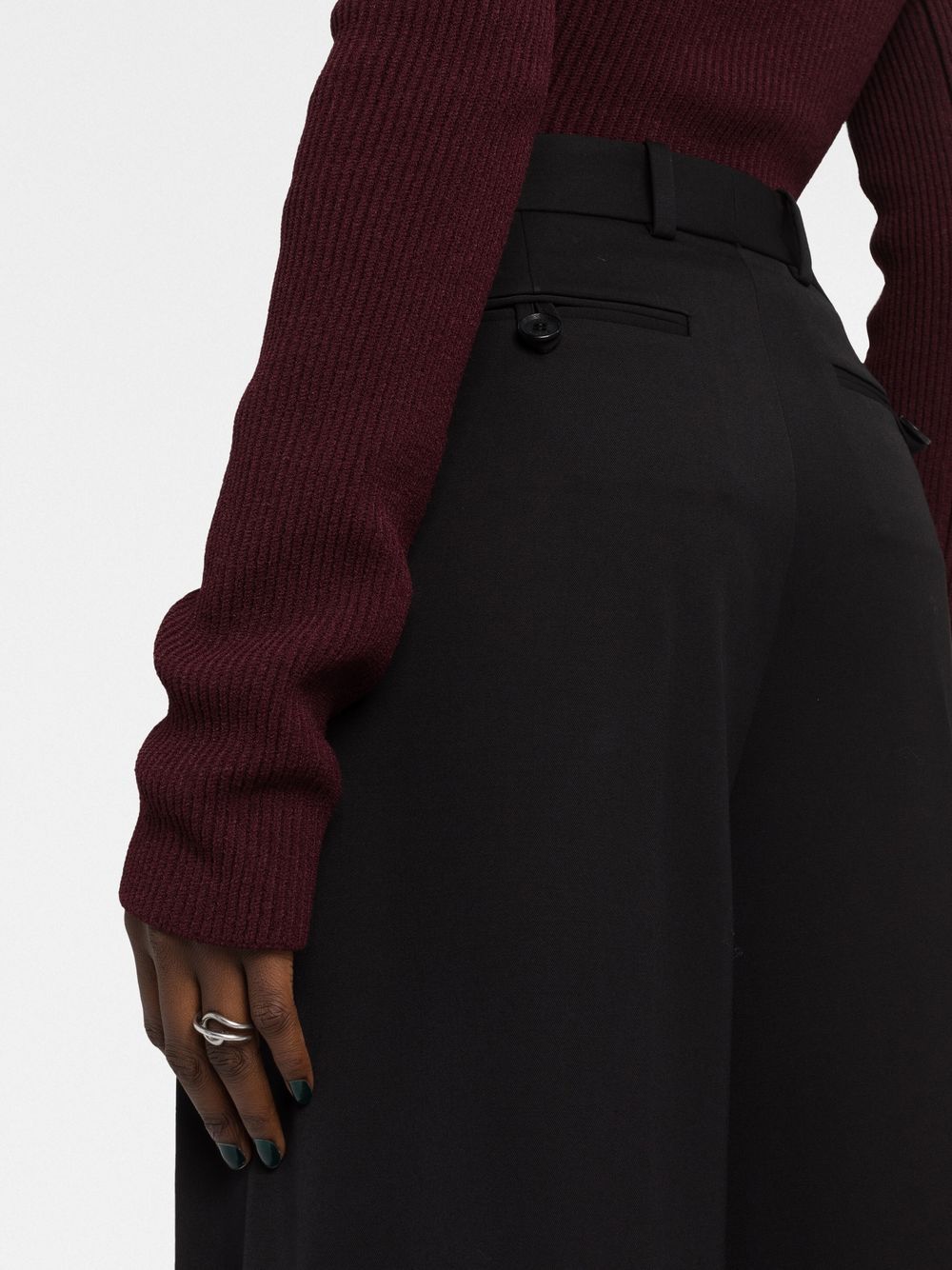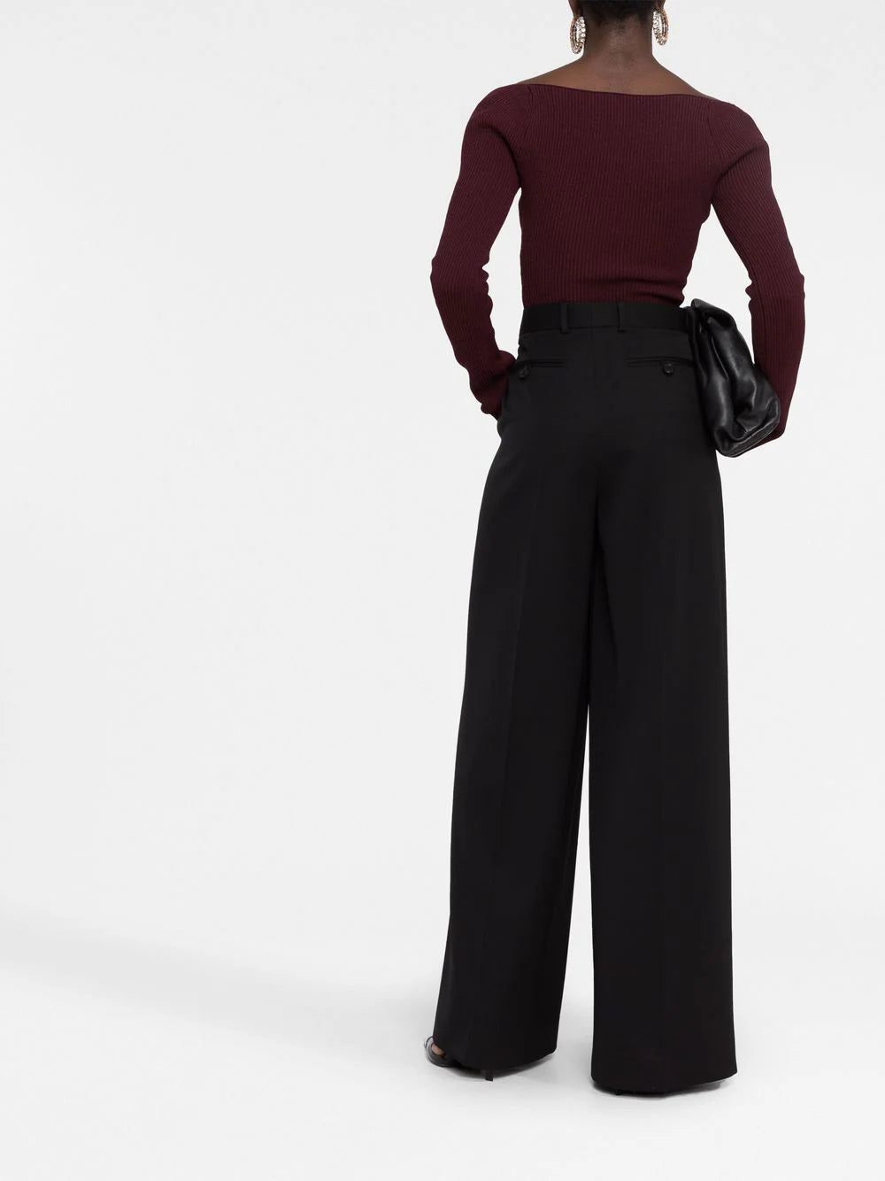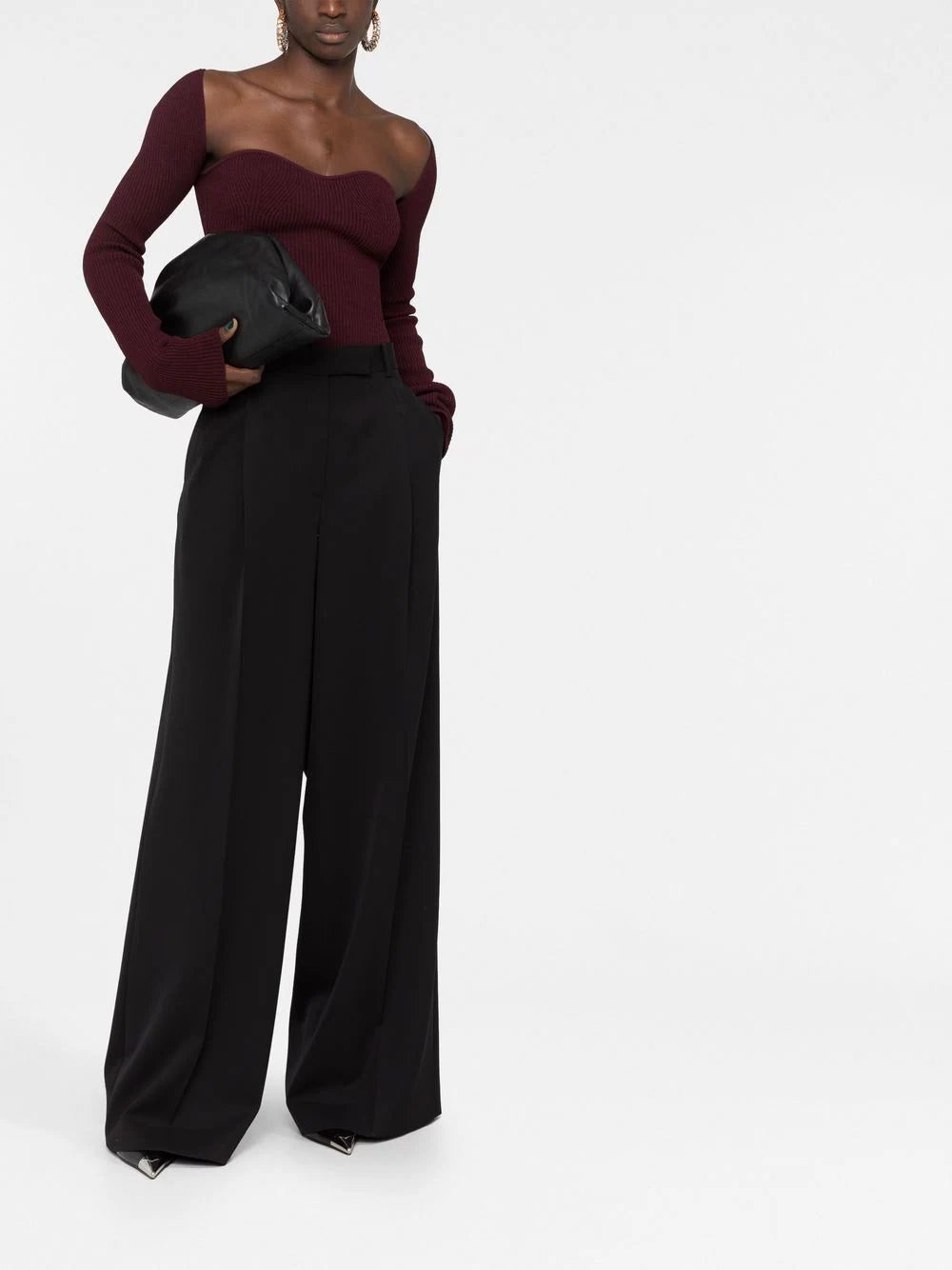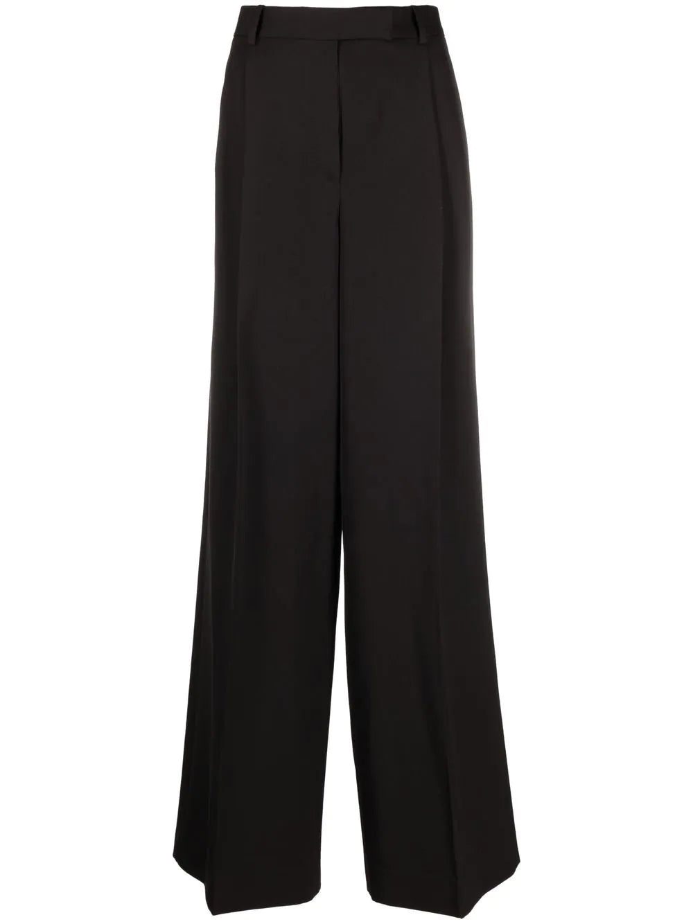wide-leg pleated trousers from Versace featuring black, virgin wool, pleat detailing, wide leg, concealed front fastening, belt loops and slip pockets to the sides.