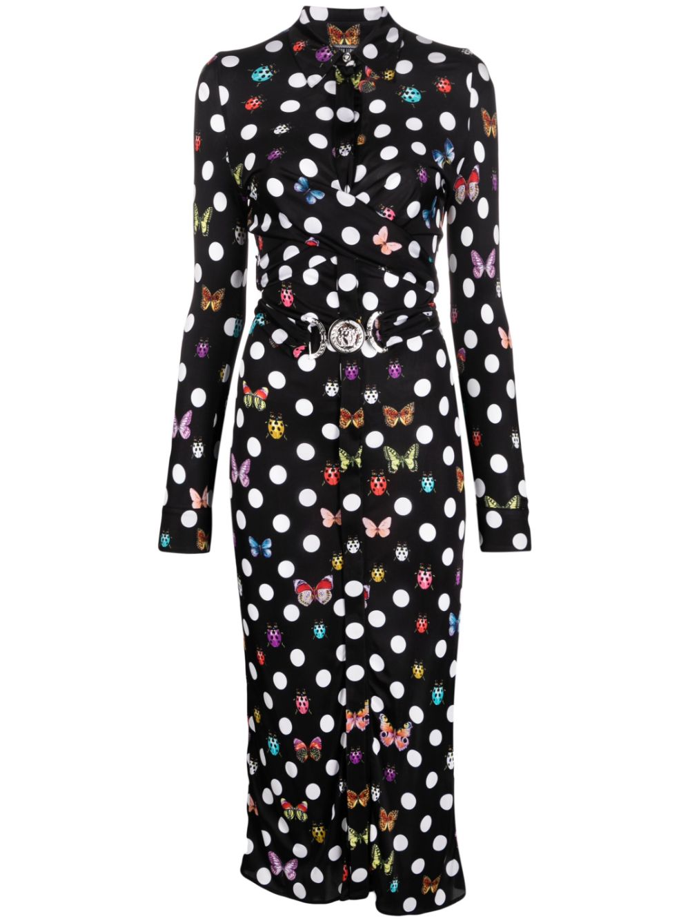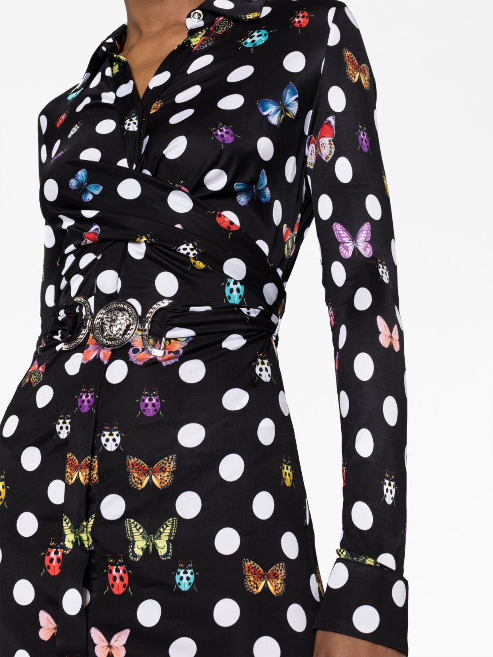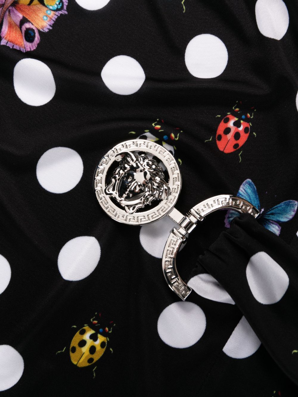 Created in collaboration with Dua Lipa as part of the joint 'La Vacanza' collection, this Versace dress is characterised by the Butterflies & Ladybugs Polka Dot print that can be found throughout the capsule. The Italian brand's iconic Medusa Head punctuates the front and is reminiscent of a belt buckle.