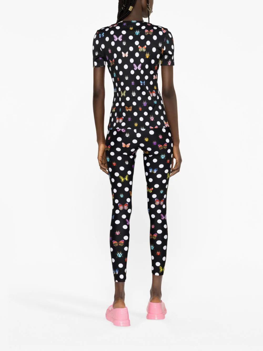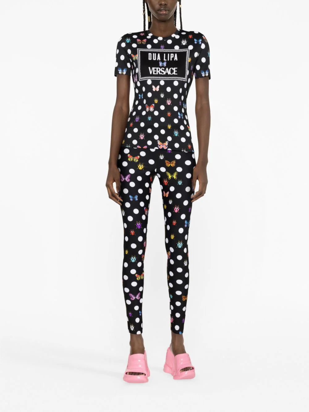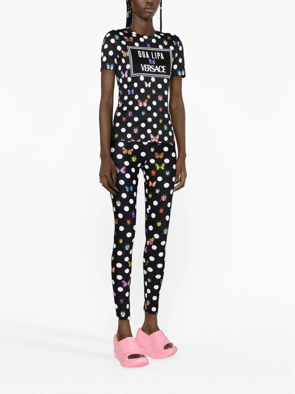 Colourful butterflies and ladybugs populate Versace's La Vacanza capsule collection, co-designed with singer-songwriter Dua Lipa. A case in point, these leggings act as a canvas for the refreshed archival pattern first seen on the Maison's Spring/Summer 1995 runway.