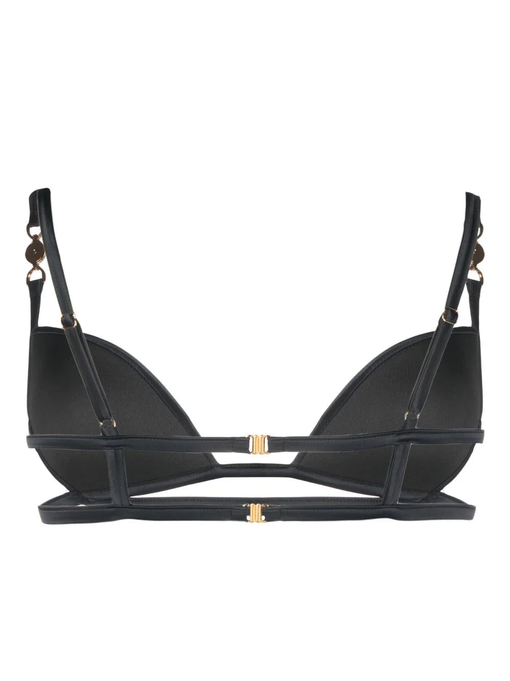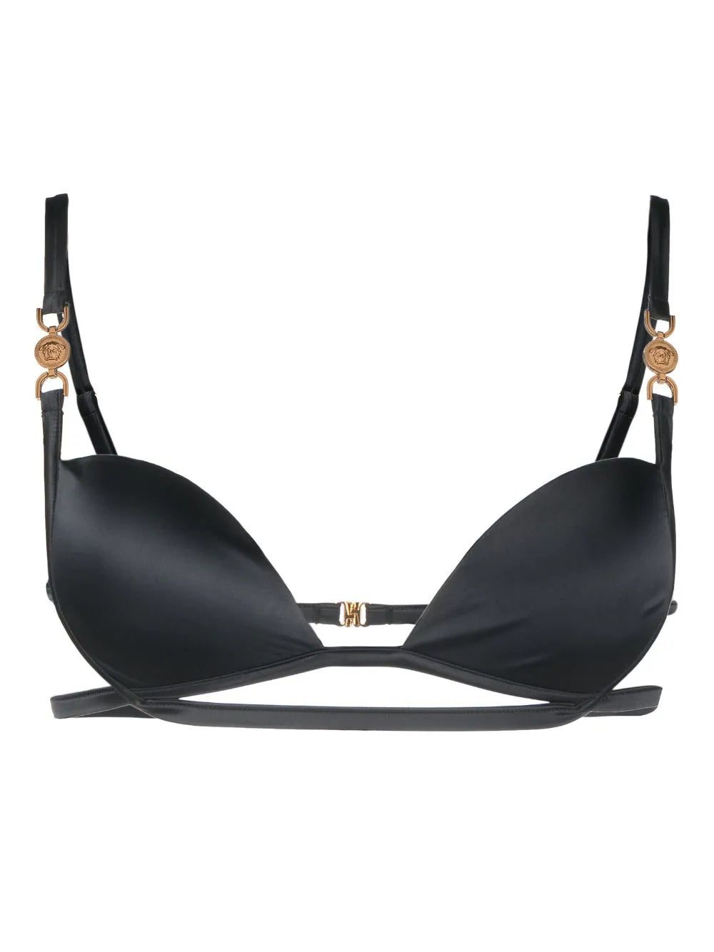 Versace's collaborative collection with Dua Lipa comprises signature house codes, and this satin-effect bra is a case in point. The adjustable shoulder straps are accented with the signature gold-tone Medusa Head motif.