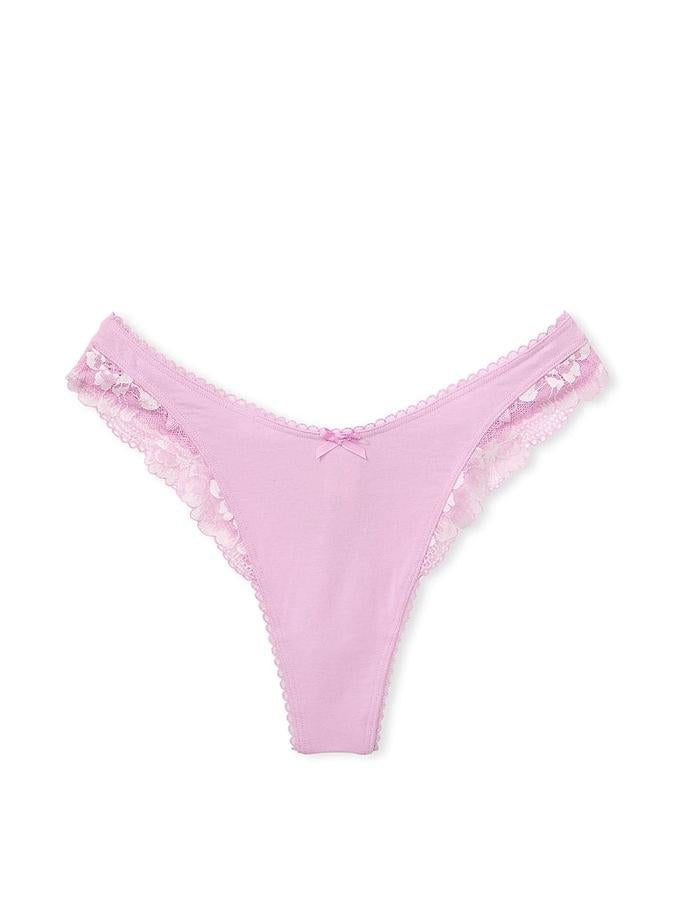 Victoria’s Secret Stretch Cotton Lace-Trim High-Leg Scoop Thong Panty