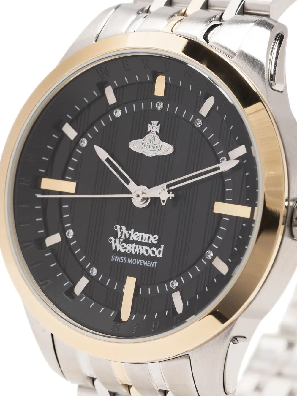 Defined by its two-tone colourway, Vivienne Westwood's stainless steel East End Renata watch is inspired by contemporary architecture in East London. The layered dial is inlaid with crystals for an illuminating finish.