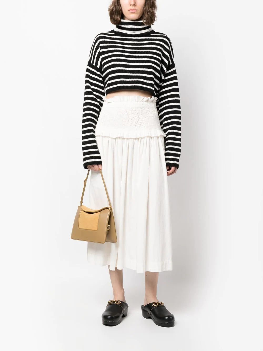 Wandler Penelope suede bag from WANDLER featuring mustard yellow, calf leather, suede panels, tonal design, logo print to the front, foldover top with magnetic fastening, adjustable shoulder strap and partitioned compartment. Conscious: We've partnered with Good On You – an ethical agency that rates how sustainably brands perform. This item comes from a brand that performs well in relation to their impact on people, which ensures good working conditions in the supply chain..