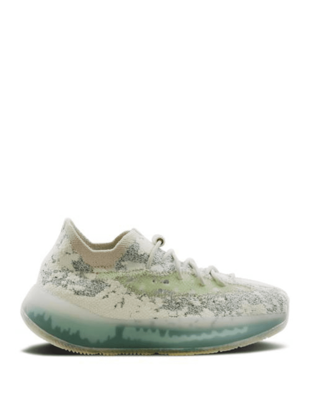 - Released in May 2021, the Yeezy Boost 380 Kids 'Alien Blue' features a look similar to 2019's debut 'Alien' colorway. The shoe's upper is built with reengineered Primeknit, which sports a camouflage-style mix of white and grey. Green accents the monofilament window on the side wall, while no-tie laces secure the fit. Underfoot, a full-length Boost midsole in a rubber cage provides cushioning, giving way to a herringbone rubber outsole for traction.