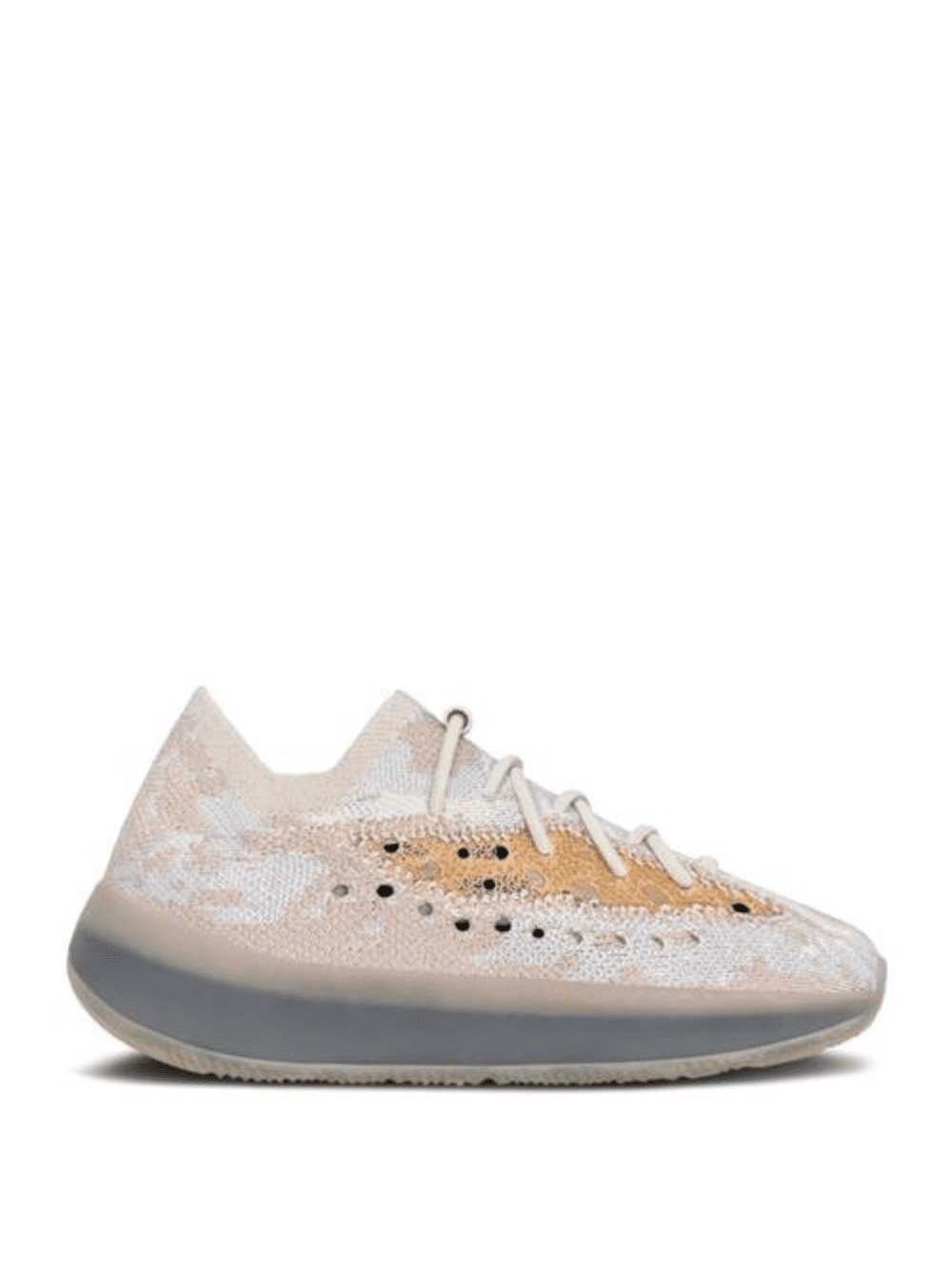 - The Yeezy Boost 380 Kids 'Pepper Non-Reflective' is a kids' iteration of the shoe. Built with Primeknit, the shoe's sock-like upper emerges with neutral tones in a camouflage style, with an orange post-dyed monofilament stripe cutting through the side wall. Perforations on the side wall provide breathability, while underfoot, a rubber cage overlays the full-length Boost midsole, which provides cushioning.