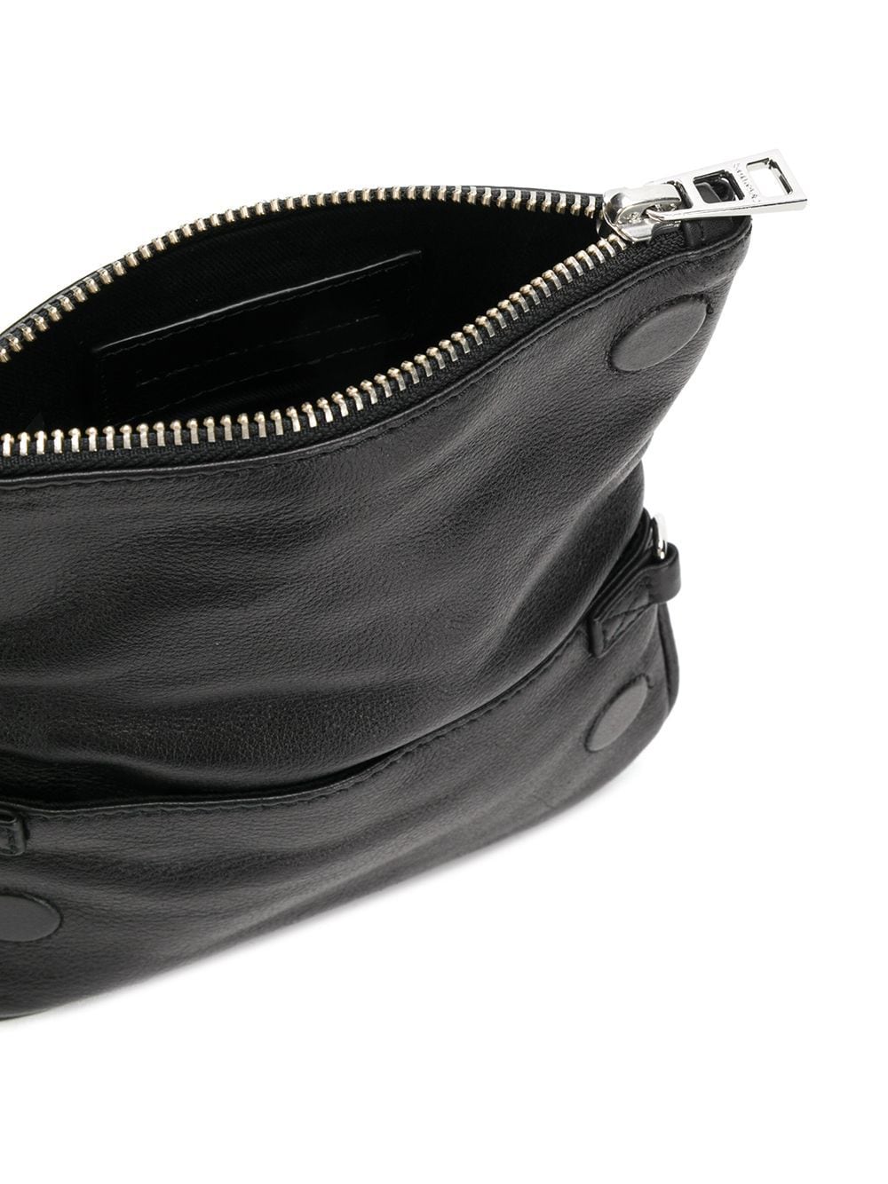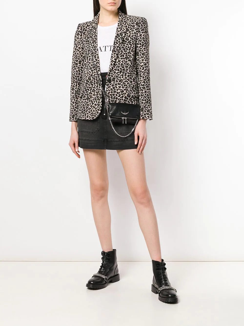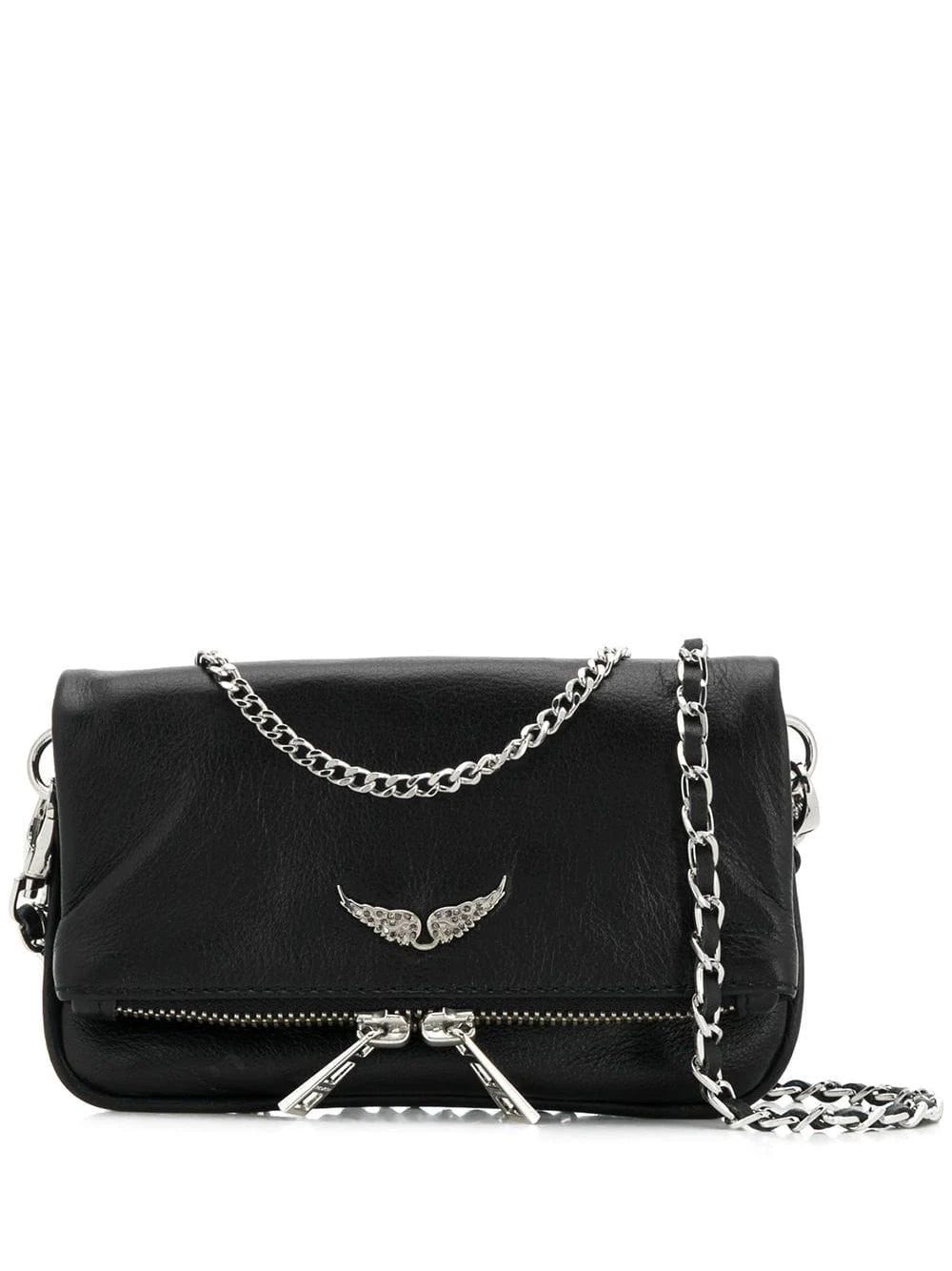 Black cotton and leather Rock Nano bag from Zadig & Voltaire featuring a silver-tone chain shoulder strap, a foldover top with magnetic closure and a zip fastening.